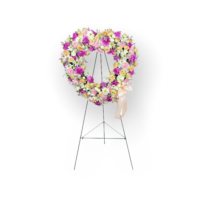 A symbol of your enduring love is beautifully expressed through a softly feminine, heart-shaped wreath.